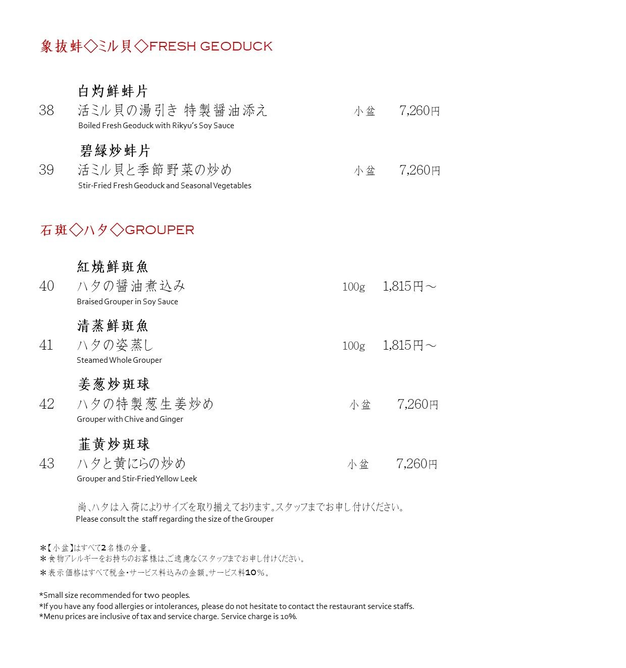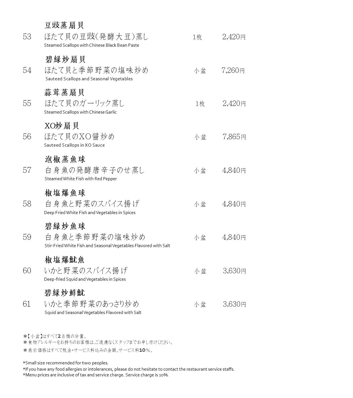 海鮮メニュー