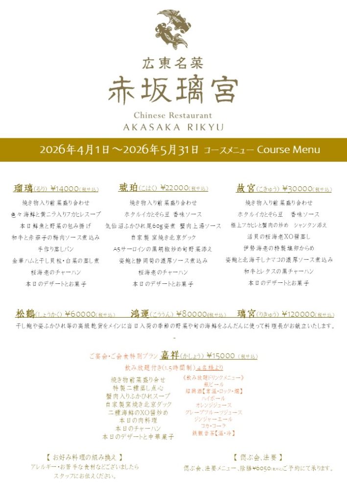 平素より赤坂璃宮をご愛顧いただき誠にありがとうございます。