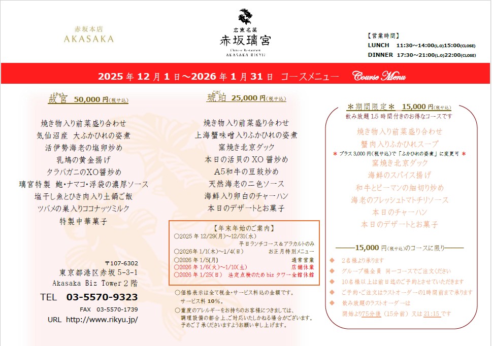 平素より赤坂璃宮をご愛顧いただき誠にありがとうございます。