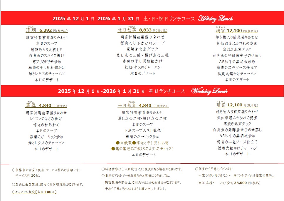 2025年8月10日より赤坂璃宮 赤坂本店は営業時間が変更になります。