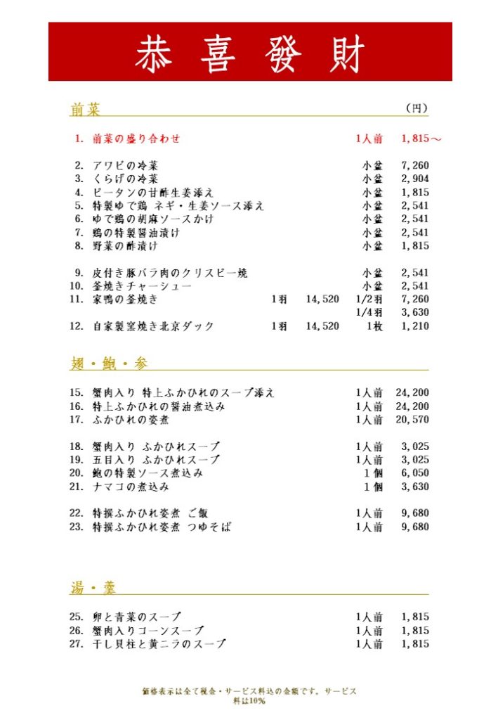 赤坂本店コースメニュー更新