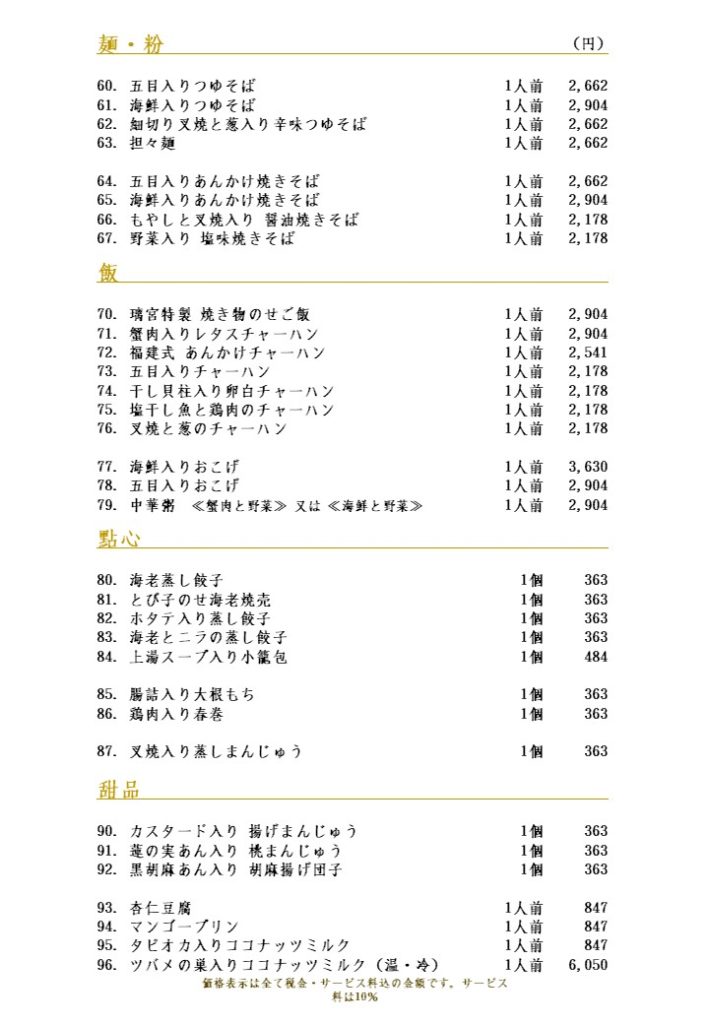 現在、赤坂璃宮の赤坂本店、銀座店、虎ノ門店では、