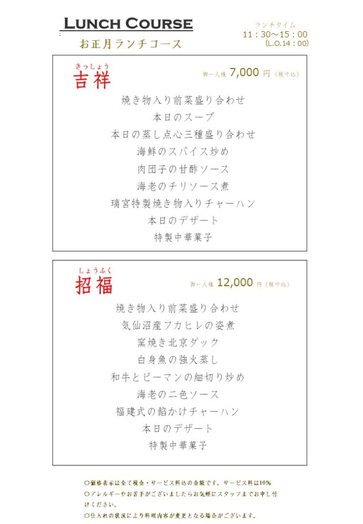 赤坂本店 お正月特別コース